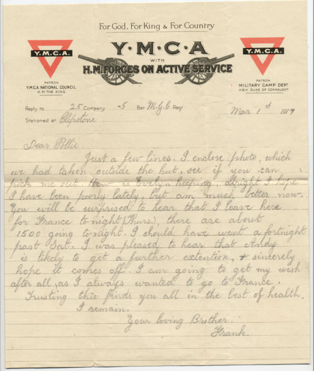 Frank wrote over 50 letters about his time in the Machine Gun Company